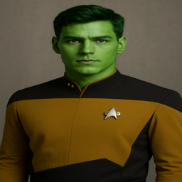 | Physical Description | Physical Appearance It’s immediately obvious that Darius is a man of mixed genetic heritage. He stands somewhere between 6’1” and 6’2” which is taller than an average human, but shorter than an average Orion male. His skin tone accentuates his hybrid nature as well. It’s not the emerald green of his father or most of his species, but he could never be mistaken for a human. His skin tone is light to medium green and shifts hues depending on his mood. When he is relaxed or happy it’s a light green, even bordering on olive, not THAT different from a Mediterranean human, but different enough. When angry, or moody, it can darken considerably. It’s clear he isn’t a weight lifter, it’s equally clear he takes care of himself He has a strong core and his 190 pounds is all lean muscle built for endurance and stamina rather brute strength with less than 5% body fat. When not in uniform, he prefers wearing comfortable, functional clothing rather than the latest fashion. Enhanced physical stamina and endurance - Greater than human average but not full Orion levels Naturally higher metabolism - 4,200-4,800 calories per day Can spike to 5,500+ calories Mild deficiencies can make him more irritable and moody, and make his skin a pale green severe deficiencies and create dangerous mood swings and even create a metabolic crisis that makes his hybrid physiology unstable. Slightly elevated body temperature - Around 99-100°F (between human 98.6° and higher Orion temps) |